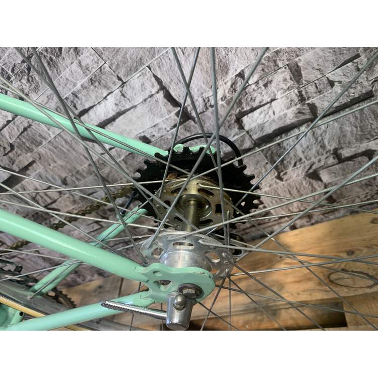 Bianchi "Amatori". Bei diesem Renner handelt es sich um eine frühe Variante des Modells, noch mit der Mittelzugbremse. Das Rad befindet sich nahezu vollständig in der Auslieferungsspezifkation und ist so gut wie ungefahren; in diesem Zustand so gut wie nicht mehr zu finden; "ready to race" zum cruisen.Differenzbesteuerung nach §25a UStG.