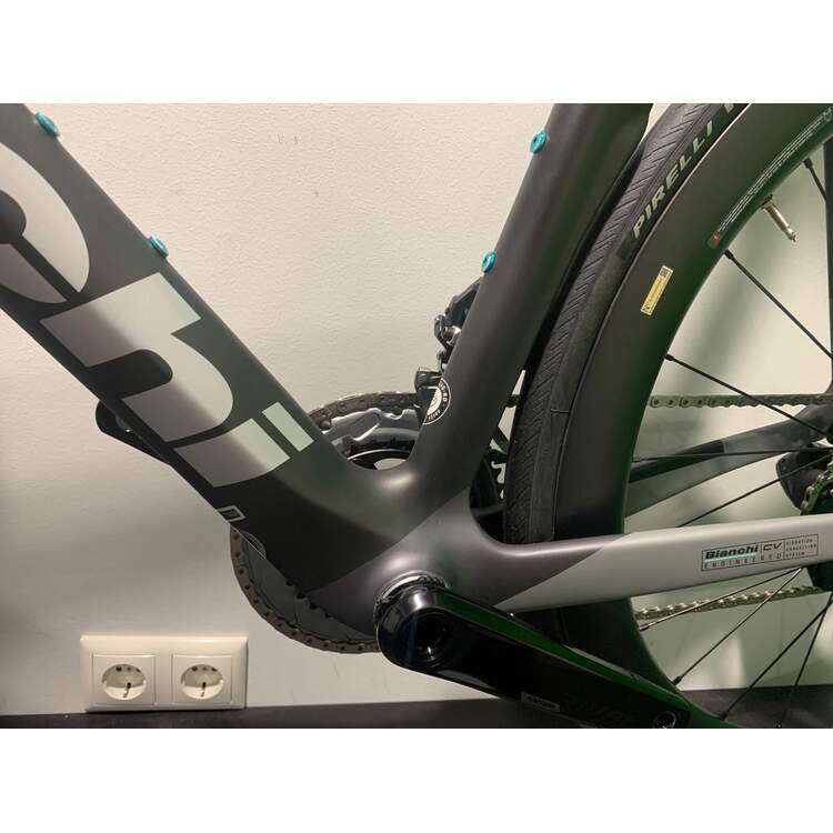 | Rahmen: | OLTRE XR4 Bianchi CV carbon, mechanical/electronic, seat stay section UTSS SS, HT with integrated fork, carbon dropout shape, BB-PressFit 86,5x41 Disc brake flat mount, thru axle 12 x 142 |