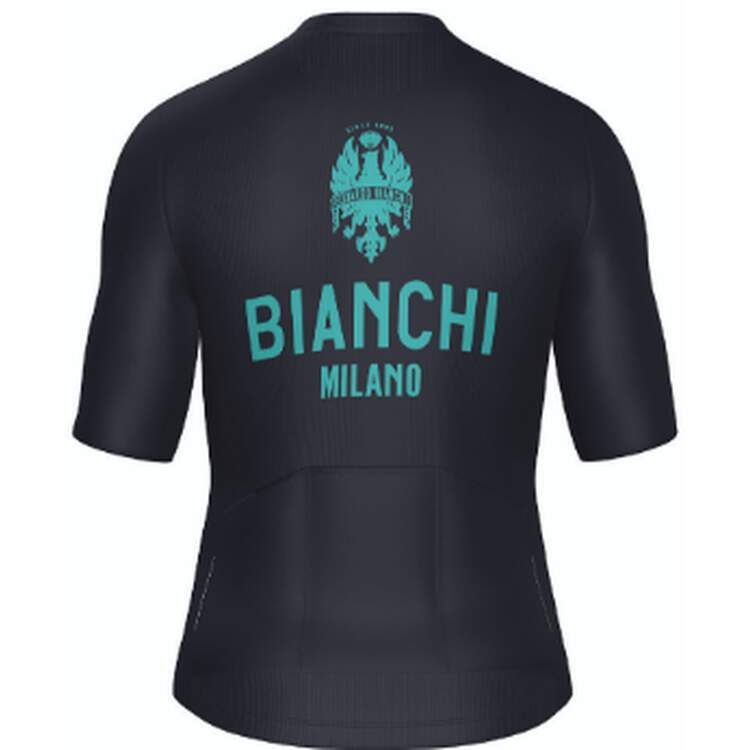 Discover the perfect blend of performance and comfort with the Classic cycling Jersey from the Bianchi Milano collection. Designed for a classic fit, it combines Tradition and modernity, featuring the iconic Bianchi Milano logo and available in celeste and dark gray. Crafted from premium materials, the Jersey offers lightweight front fabric for freedom of movement, ultra-breathable back and collar for dryness, and snug, aerodynamic sleeves with raw-cut edges for efficiency. A secure internal elastic keeps the jersey in place, while a triple back pocket and reflective details ensure practicality and safety.