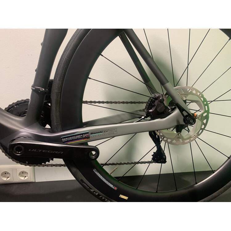 | Frame: | OLTRE XR3 Bianchi CV carbon, mechanical/electronic, seat stay section UTSS SS, HT with integrated fork, carbon dropout shape, BB-PressFit 86,5x41 Disc brake flat mount, thru axle 12 x 142, sizes 47-50-53-55-57-59-61cm |