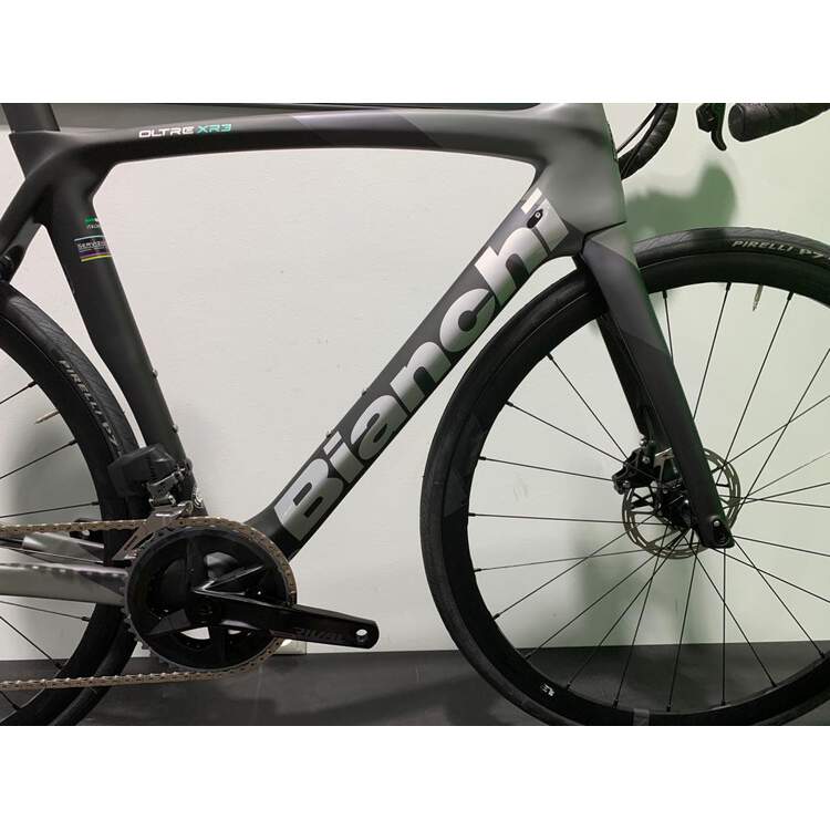 | Frame: | OLTRE XR3 Bianchi CV carbon, mechanical/electronic, seat stay section UTSS SS, HT with integrated fork, carbon dropout shape, BB-PressFit 86,5x41 Disc brake flat mount, thru axle 12 x 142, sizes 47-50-53-55-57-59-61cm |