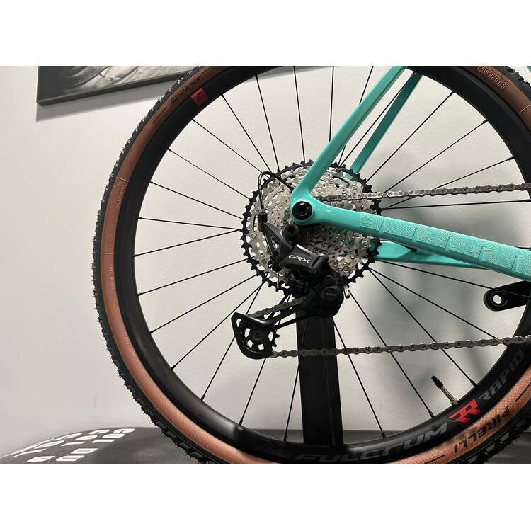 Cadre: Arcadex Comp Disc Brake Specification: Flat Mount 140/160 Bottom Braket Standard: PressFit 86.5 X diam.41 Rear Axle: thru12 OLD (Over-Locknut-Dimension): 142 mm Front Derailleur:Non Compatible Rear Derailleur: SRAM UDH Hanger type Max Chainring Compatibility: 38T-44T Minimun Chainline: 45.5 mm Tire Clearance: ETRTO 622-50mm SeatPost O.D: diam.27.2 mm Material: Epoxy - SM Carbon Fiber Composite Casque: Bianchi Custom Acros ICR (Internal Cable Rounting) Spacers:5 mm x1, 10mm x3 Headtube Cover: Bianchi Costum Compresion Ring: 1.125 Inch Top Bearing: Angular contact Bearing 42x52x7 + seal Bottom Bearing: Angular contact Bearing 40x52x7 + seal Gabel: Bianchi Arcadex Fork Disc Brake Specification: Flat Mount 140/160 Front Axle: thru12 OLD (Over-Locknut-Dimension): 100 mm Tire Clearance: ETRTO 622-42mm Steer tube Diameter: 1 1/8 Material: Epoxy - SM Carbon Fiber Composite Shifter: Shimano GRX Derailleur arriere: Shimano GRX Crankset: Shimano GRX Crank Length: 170mm-XS(47)-SM(51), 172.5mmMD(55)-LG(58), 175mm-XL(61) Tretlager: Shimano SM-BB72-41B, press fit Chaîne: Shimano CN-M7100 Cassette/Freewheel: Shimano Bremse: Shimano Hydraulic Brake Disc Rotor: Shimano SM-RT70 IceTech Hub Interface: Centerlock Rotor Diameter: 160 mm (front&Rear) Rim/Wheelset: Fulcrum RapidRed 900 - Velomann 20G Alloy Pneus: Pirelli Cinturato™ GRAVEL M Classic, 45-622 tan sidewall Stem: Velomann AICR Alloy Rise: -2° Steerer Diameter: 1-1/8 (28.6mm) HB interface Diameter: 1-1/4 (31.8mm) Stem Lengths: 80mm - XS(47), 90mm - SM(51), 100mm-MD(55), 110mm-LG(58),120m -XL(61) Liens: Velomann Gravel ICR Alloy Flare: 16° Drop: 130mm Reach 70mm Interface Diameter: 1 1/4 (31.8mm) HandleBar Widths: 400 - SX(47) SM(51), 420 - MD(55) LG(58), 440 -XL(61) Grip/Tape: La Spirale Ribbon cork Tige de selle: Velomann Carbon UD SeatPost O.D: diam.27.2 mm Seatpost lengths: 300mm-SX(47), 350mm- SM(51) MD(55), 400mm-LG(58) XL(61) Selle: Velomann Mitora149 h3, open flow, Steel rails, carbon-reinforced nylon Large 149mm Lenght 250mm