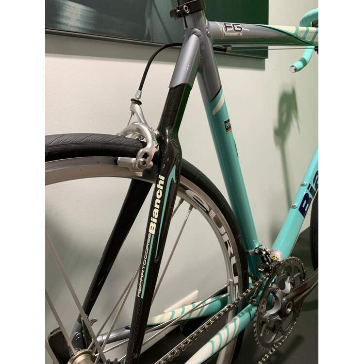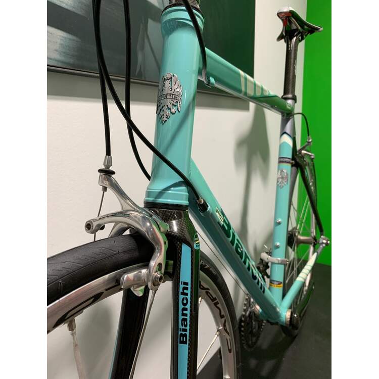 Beautiful Bianchi FG Light aluminium carbon in top condition and the rare frame height of 63cm. Only high-quality components and attachments are installed. With a frame height of 63cm c/t we have a total weight of 7.5Kg.