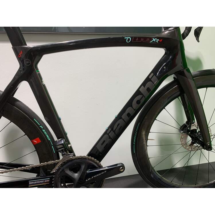 Used bike: Beautiful Bianchi XR4 Disc. in the popular 2R paint finish, top equipment with the Fulcrum "Airbeat" carbon wheels, the bike has been completely overhauled with many new parts, 1 year guarantee.