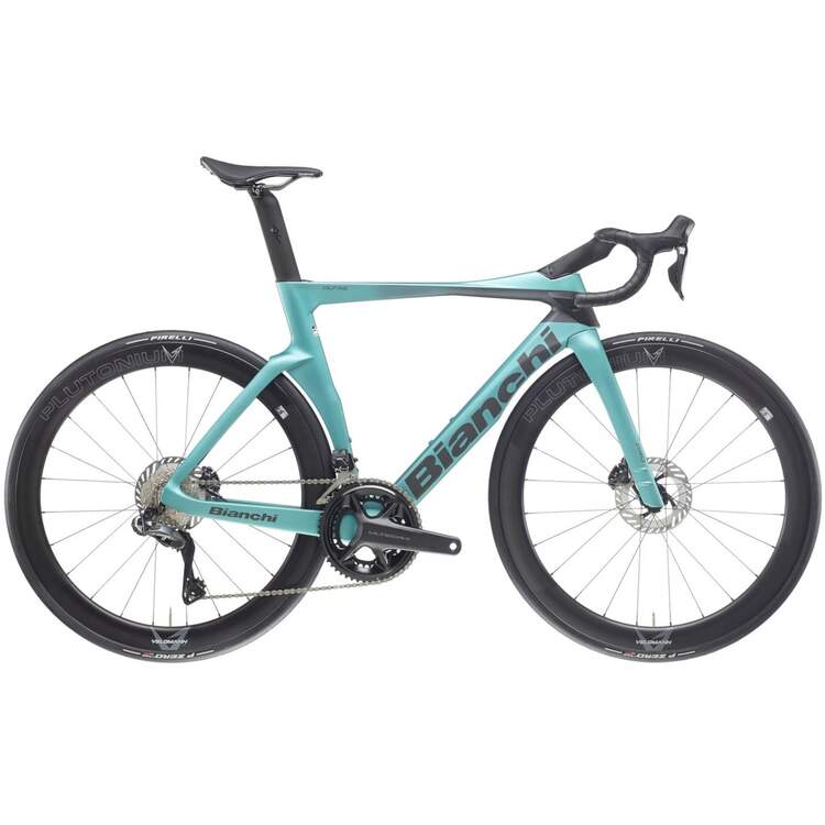 | Cadre: | Oltre PRO carbon w/Bianchi CV System aero shape, electronic drivetrain only, headset 1.1/4-1.1/4,BBPressFit 86,5x41mm, integrated seat clamp, for flat mount caliper, internal cable routing for disc brakes, thru axle 12x142mm, sizes 47-50-53-55-57-59cm |