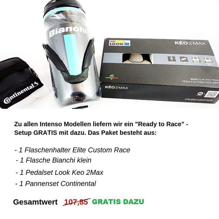 Bianchi Intenso - der Komfort-Carbon-Renner. Das Intenso bietet alles was ein Komfort-Renner können muss: Carbon Monocoque Rahmen, verlängertes Steuerrohr und verkürztes Oberrohr tragen immens zum Komfort des Bianchi Intenso gegenüber anderen Rennrädern bei. Das perfekte Rennrad für Marathons und entspannte Wochenendrunden.
