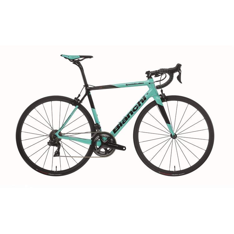 Das Bianchi Specialissima ist das Meisterwerk der Bianchi Ingenieure. Der Rahmen ist ultraleicht und wiegt nur 780g (RH55, mattschwarze Version). Die zugehörige Vollcarbon Gabel kommt auf gerade einmal 340g. Entscheidend ist jedoch nicht das Gewicht sondern die phänomenale Steifigkeit und Fahrbarkeit des neuen Specialissima.